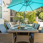 Denna lägenhet på 42 m^2 har uteplats, mathörna och te/kaffebryggare i varje rum. Gäster kan koppla av i rummen med en terrass. Sängar med dunkuddar och sängkläder erbjuds.